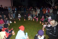 Auf der Spielwiese des Kindergartens haben wir gemeinsam Martinslieder gesungen und einen Lichtertanz vorgeführt. Unsere Eltern, Omas, Opas und Geschwister waren begeistert.