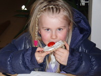In der Woche vom 21.03.2011 - 25.03.2011 gibt es für alle Schüler eine besondere Pause. Am Montag gab es Vollkornbrot mit Kräuter-Topfen-Aufstrich. Das schmeckte uns beiden, aber nicht allen Schülern, sehr gut. Am Dienstag gab es Frucht-Jogurt. Wir durften uns die Früchte selbst aussuchen. Das aßen alle Kinder gern; es blieb nichts übrig. Am Mittwoch gibt es Obstsalat, am Donnerstag gesunde Häppchen und am Freitag gibt es Obst. Wir sind schon ganz gespannt und freuen uns auf die nächsten Jausen. Tamara u. Moritz 4. Klasse  |
