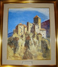 Originalgemälde des Schlosses Karneid von Prof. Lenhart, ausgestellt im Heimatmuseum Steinegg |