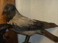 Foto von einer ausgestopften Nebelkrähe, ausgestellt im Heimatmuseum Steinegg |