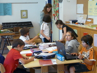 Kinder der Grundschule Prad, Klasse 123a, beim individuellen Arbeiten. |