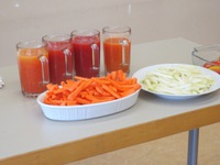 Am Dienstag, 11.02.14 gingen wir in der Früh in die Küche und begannen unser Frühstück vorzubereiten. Als erstes knackten wir die Nüsse, die wir dann zerhackten. Einer unserer Gruppe schnitt die kandierten Früchte. Die anderen drei knackten weitere Nüsse für die Kekse.  Wir machten den Teig für die "Strielzln". Zwei von unsere Gruppe haben Eier und den Zucker verrührt, die Nüsse und die kandieren Früchte sowie das Mehl dazugegeben und zu einem Teig verarbeitet. Daniel und Elias (2F) Eine andere Gruppe bereitete das Vollkornbrot zu.   Zuerst haben wir den Teig geknetet, danach geformt und dann im Ofen gebacken. Später haben wir das Rezept für das Brot aufgeschrieben, die Küche aufgeräumt und bei anderen Gruppen mitgeholfen. Es hat uns sehr viel Spaß gemacht und wir würden es sehr gerne wiederholen. Laura und Natalie (2A) Gemüsesticks und Brotaufstriche  Die vierte Gruppe hat am Anfang, Gemüse aufgeschnitten. Dann haben sie die Vollkornscheiben belegt: mit Tomaten,Gurken,Eiern,Schinken,Käse,fettarmer Butter,Salat und Quarkaufstrich mit Schnittlauch. |