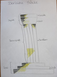 | Die Dorische Säule Der obere Teil der Säule heißt Kapitell. Er besteht aus der Deckplatte und der Wulst. Darunter befindet sich der Säulenschaft. Die Rillen darauf nennt man Kannelüren. Den untersten Teil nennt man Sockel, er besteht aus Stufen. Quelle: fragfinn.de Autoren: Theresia Wierer, Sophia Pörnbacher |