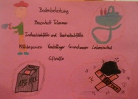 | WAS IST DAS? Die Städte wurden oft auf Bauschutt gebaut. Das heißt unter den Häusern befinden sich Trümmer von Häusern, Kriegsgegenstände, Industrieabfälle von kaputten Fabriken. Diese Schadstoffe belasten den Boden. WAS PASSIERT DANN? Diese Schadstoffe sehen wir nicht auf den ersten Blick, aber sie sind da und deshalb auch gefährlich. Altlasten sind auch gefährlich. Wenn zum Beispiel früher Fabriken stillgelegt wurden und die Gifte nicht aufgeräumt wurden oder Mülldeponien nicht genügend kontrolliert werden, dann können Giftstoffe austreten und in den Boden gelangen. Ebenso ist der Müll, den wir einfach auf den Boden werfen gefährlich. Wenn sich der Müll auflöst, können oft Giftstoffe austreten und diese gelangen dann in das Grundwasser. Auch die Kunstdünger und die giftigen Spritzmittel, die in der Landwirtschaft eingesetzt werden, können in den Boden gelangen und dort Schaden anrichten, weil sie sich nicht auflösen und ins Grundwasser gelangen. Was können wir dagegen tun?