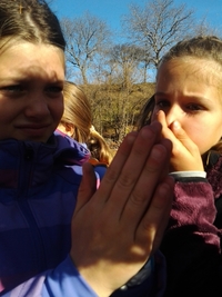 | Wir schauen uns die Erde unter einem Misthaufen genauer an. Es wimmelt nur so von Regenwürmern und anderen kleinen Bodenlebewesen. Desto mehr wir mit der Schaufel den alten Mist umgraben umso mehr fängt es an dach Stallmist zu riechen: Na ja, allen bekommt das nicht so! hahaha  In einen Garten gehört ein alter Stallmist dazu. Bei diesem Garten wird nur biologisches Gemüse angebaut und daher kommt auch nur Stallmist von Kühen, die biologisch gehalten werden, auf und in den Boden. Diese Kühe haben sehr viel Auslauf und bekommen keine Kraftfutter, das aus Monokultur stammt oder mit Spritzmitteln behandelt wurde. Das ist natürlich für den Boden schonender.
