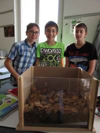 Ergebnis: Am Beginn Nach einer Woche  Nach zwei Wochen  Viele Bodenlebewesen wirken zusammen, wenn ein frisch gefallenes Blatt zersetzt wird. Jede Art hat in dieser Fraß-Gemeinschaft ihren besonderen Platz. Regenwürmer leben hauptsächlich von dem, was andere Lebewesen anverdaut und übriggelassen haben. Am Ende aber sind sie es, die die Zersetzungsreste ganz verdauen und vermischen. |