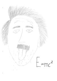 | Albert Einstein wurde am 14 März 1979 in Ulm geboren. Er starb am 18. April im Alter 76 Jahren. Als er noch jung war, lebte er in München bei seinem Vater. Sein Vater hatte eine Fabrik für Elektrogeräte. Albert war nicht gut in der Schule. Albert lernte erst spät sprechen. E=mc2 bedeutet E für Energie, M steht für Masse und C steht für Lichtgeschwindigkeit. (Das sind 300 000 Kilometer in der Sekunde). Er fand heraus, dass nichts schneller, als das Licht sein kann. Erklärung: Wenn du in einem Auto sitzt, das schnell startet, wird man in den Sitz gedrückt. Man spürt die Beschleunigung. Wenn das Auto nicht fährt und man das Auto aufstellen würde, würde man wieder in den Sitz gedrückt. Das ist die Schwerkraft. Elias Wieland, GS Teis, 4. Klasse