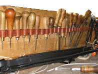 Am Arbeitsplatz des Wagners befindet sich griffbereit ein Werkzeugbrett mit den wichtigsten Werkzeugen. |