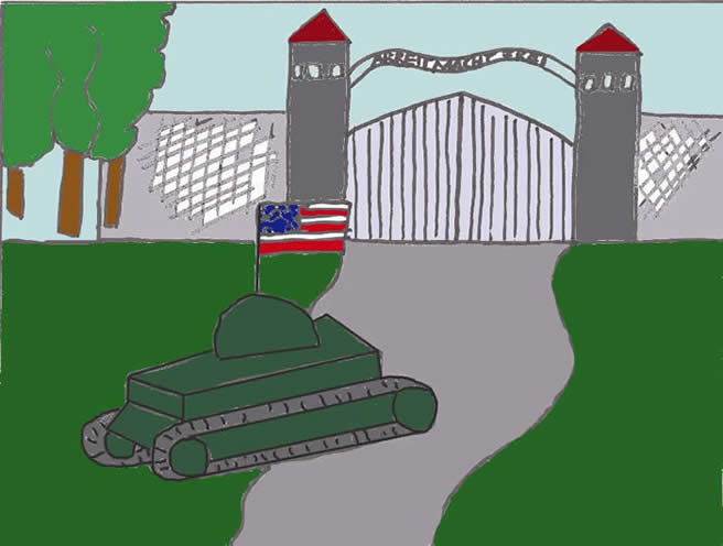 Unendliche Tage, Wochen und Monate vergingen im Lager. Deutschland hatte den Krieg verloren und die Aufseher und Offizieren verschwanden aus dem Lager, da die Amerikaner mit Panzern vorrückten. Sie befreiten das Lager. |