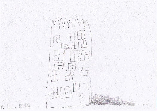 Da haben wir einen Film angeschaut, vom Groggi und vom Jojo. Und da war ein Prinz, der ist vom Turm heruntergefallen Und da war eine Zauberin, die hat den Turm verzaubert.