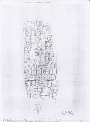Da ist ein Hochhaus, da geht eine Stiege bis zum Dach.