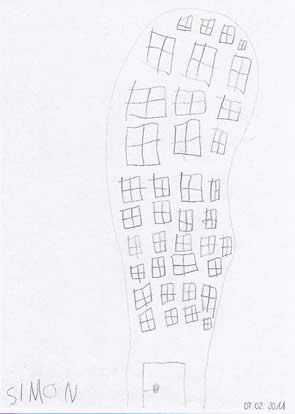 Das ist ein hohes Haus mit vielen Türen und Fenstern!
