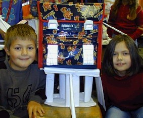 Die Brücken aus Papier tragen einen vollgepackten Ttornister!