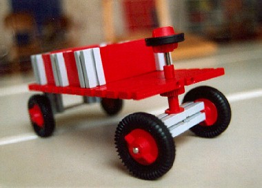 Während die meisten Kinder wissen, dass die bewegliche Achse an einem Punkt mit dem Fahrgestell drehbar "befestigt" sein muss, bedenken sie im Vorfeld häufig nicht, dass ein genügend großer Lenkausschlag vorhanden sein muss.