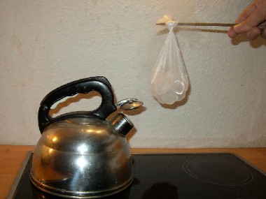 - Schalte die Kochplatte an und beobachte, was geschieht. Führe diesen Versuch nur gemeinsam mit der Lehrerin durch.