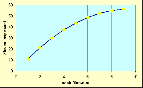 | Monat | nach ... | Einzahlung | Ansparung | Anzahl der | Einzahlung | Zinssatz | Zinsen | Zinsen insgesamt | Ansparung | |||||||||||||