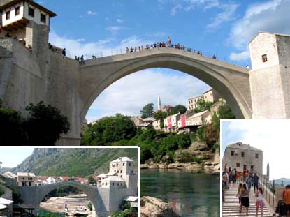 Die Brücke in Mostar wurde im Bürgerkrieg total zerstört. Heute ist sie neu wieder aufgebaut und verbindet erneut die Menschen mit christlicher und islamischer Religion. Sie trennt die kroatische auf dem westlichen Ufer des Flusses Neretva von der bosniakischen Stadt.