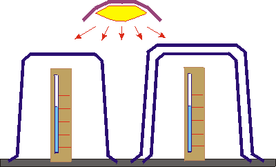 - Die Aufheizung der "Innenräume" erfolgt durch einen starken Lichtstrahler. Es kann eine Infrarotlampe sein. Sie muss aber von beiden "Glashäusern" denselben Abstand haben.