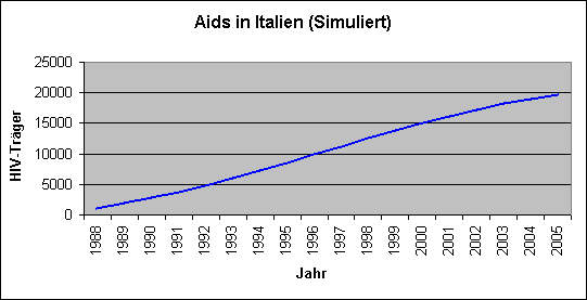 Wir haben eine Statistik der Neuinfizierten und der Todesfälle in den Jahren 1982-2000 erstellt. Aus dieser haben wir die HIV-Träger berechnet.