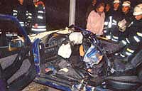 Aus dem völlig zerstörten Autowrack schnitten Feuerwehrleute zwei schwer verletzte junge Männer frei. Für den Beifahrer (17) kam jede Hilfe zu spät." RN 4.10.2004; es ist nur ein Beispiel!