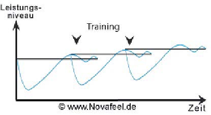 Ist aber die Regenerationsphase zwischen Trainingsbelastungen zu groß, geht der Trainingseffekt wieder verloren. Wird hingegen zu viel oder/und zu intensiv trainiert, hat der Körper nicht genügend Zeit zur Regeneration und das Leistungsniveau sinkt ab.