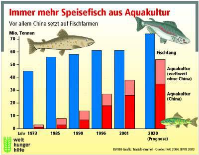 "Kein Bereich in der Nahrungsmittelproduktion wächst so stürmisch wie die Aquakultur. Seit Mitte der 70er Jahre haben sich die Erträge von Fischfarmen mehr als verzehnfacht. Derzeit registriert die FAO jährliche Steigerungsraten von über 9 Prozent. Zugleich stagniert der Fischfang auf offener See."