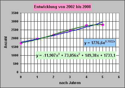 Mit Hilfe der beiden Trend-Funktionen lassen sich für Deutschland Prognosen zur weiteren Ausbreitung von HIV Prognosen erstellen.