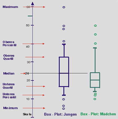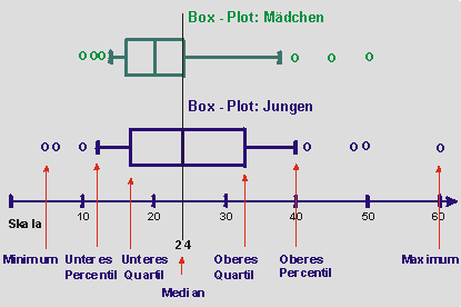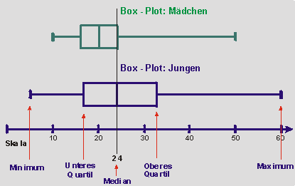 eines Box-Plots unter Nutzung von Minimum und Maximum, unterem und oberem