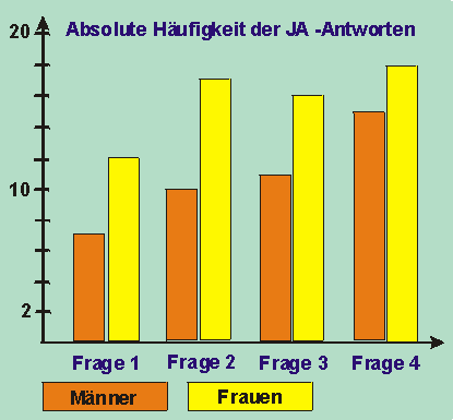Anzahl von 7 bzw. 12 oder von 10 bzw. 17 ... Ja-Antworten zur Frage 1 oder der Frage 2 ... werden in der Höhe