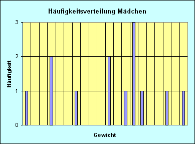 - Erstellt für das Merkmal "Körpergewicht" Jungen ebenfalls eine Häufigkeitsverteilung und ein Häufigkeitsdiagramm.