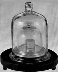 Das nationale Kilogramm-Prototyp besteht aus einer Platin-Iridium-Legierung und wird etwa alle zehn Jahre mit dem internationalen Kilogramm-Prototyp in Sèvres bei Paris verglichen. |