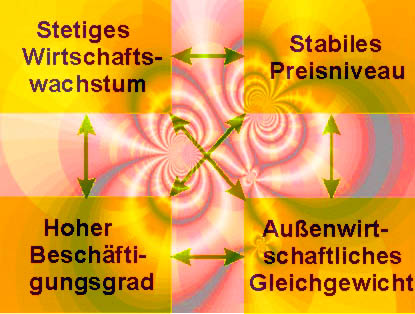 Das "Magische Viereck" der vier wirtschaftspolitischen Hauptziele für ein gesamtwirtschaftliches Gleichgewicht |