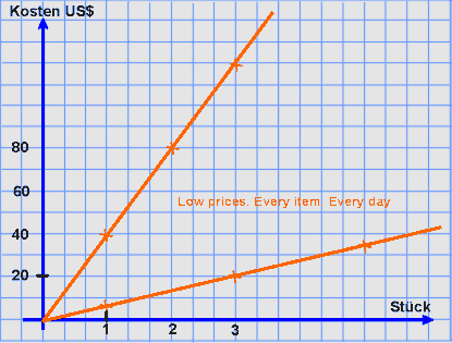 - Erstellt z.B. eine Wertetabelle für Äpfel. Informiert euch in einem Lebensmittelladen über andere Preise und erstellt Wertetabellen und Liniendiagramme.