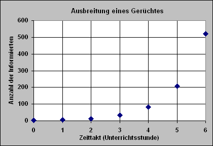 Die Zahl der Informierten nimmt dadurch zu, dass alle bereits Informierten die Nachricht an w Personen weitersagen. Je mehr Informierte es also gibt, desto mehr Jugendliche gibt es, die die Nachricht weitersagen. Aber auch die Zahl derer steigt, die die Nachricht bereits kennen und sie dann nicht weitergeben. Und: Je mehr bereits informiert sind, desto mehr kennen bereits die Nachricht. |