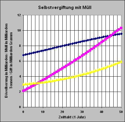 - Nehmt weiter an, dass der Anteil an Müll f1 sich vergrößert, der Anteil des Giftmülls f2 sich verdoppelt und der Anteil f2 der letal wirkenden Stoffe sich verzehnfacht .