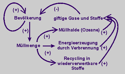 - Erweitert das dynamische Modell unter Einbeziehung von Müllmanagements nach folgendem Wirkungsdiagramm: