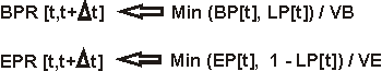 Man erhält für die Flussrate BPR vom Belastungspotential BP zum Leistungspotential LP die folgende und für EPR die analoge Ratengleichung: