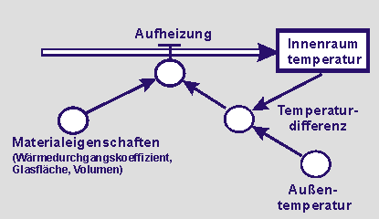 Bei der Aufheizung haben wir es mit einem einfachen Zufluss zu tun. Die Gleichungen können analog zum Abkühlprozess formuliert, programmiert und simuliert werden. |
