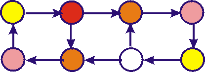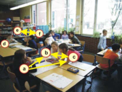 Experimentiert mit der Weitergabe einer Nachricht in Netzen. Färbt zu diesem Zweck im Netz den Ausgang der Nachricht rot, die zweite Station orange, die dritte violett und die vierte gelb. Dann ist zum Beispiel in einer Kette die Nachricht nach viermaligem Weitersagen unter vier Personen bekannt.