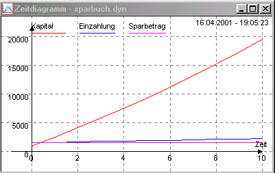 Das Zinseszinsen-Modell kann dann unter unterschiedlichen Bedingungen für Anfangskapital, Zinssätze und Sparbeträge "gefahren" bzw. simuliert werden.
