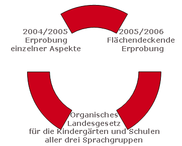 Beschluss der Landesregierung Nr. 249 vom 21.05.2005 regelt die Erprobung der Schulreform im Schuljahr 2005/2006 in den deutschsprachigen Grund- und Mittelschulen Anlage A zum Beschluss beinhaltet die Gliederung der Unterrichtszeit in den deutschsprachigen Grundschulen sowie in den ersten und zweiten Klassen der deutschsprachigen Mittelschulen im Schuljahr 2005/2006 |