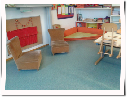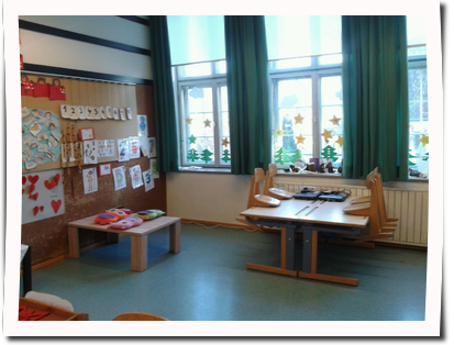 Es gibt keine Bankreihen, keine mit Tischen und Stühlen überfüllten Räume, noch Tafel-LehrerIn- zentrierte Organisation der Einrichtung.