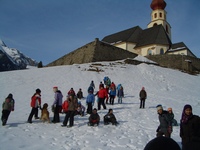 Die Bergrettungsmänner versteckten ein „Pieps-Gerät“, wir mussten es mit einem anderen Pieps-Gerät“ suchen. Es waren drei süße Hunde dabei, sie hießen Franzi, Arla und Wächter.