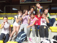 Die ganze Klasse läuft Am 27. September 2012 fand der jährliche Schulwettbewerb „Die ganze Klasse läuft“ statt. Die 4. und 5. Klasse fuhr mit dem Bus nach Brixen in die Sportzone Süd. Dort angekommen, warteten wir auf der Tribüne. Noch bevor es überhaupt anfing, brach sich Michelle den linken Knöchel. Nachher fing es dann an. Die Disziplinen waren Vortex werfen, 50m Sprint, Weitsprung. Es gab auch noch Stafettenlauf. Dort durften allerdings nur 8 von 9 Kindern mitmachen. Insgesamt waren es 5 Klassen. Natürlich gab es auch eine Pause. Als dann alles fertig war, gab es die Preisverteilung. Die weitaus beste Klasse waren wir. Nach diesem Erlebnis waren wir ziemlich müde. Das war ein sehr cooler Tag. (Sonia und Lara 5.Klasse) |