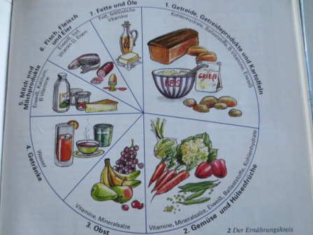 Der Ernährungskreis!  Im Ernährungskreis gibt es sieben Unterteilungen: - Getreide,Getreideprodukte und Kartoffeln(enthalten Kohlenhydrate,Ballaststoffe B-Vitamine und Eiweiß)
