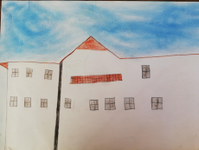 L´asilo è dietro alla banca e alla biblioteca. L´asilo è grande e bello.