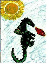 Der blaue See Es war einmal ein alter Drache. Er lebte schon seit langer Zeit in seiner Höhle. Er hatte rot glühende Augen, einen langen Schwanz und zwei riesengroße Flügel. Sein Körper war grün und rot. Er hatte auch Zacken auf dem Rücken und zwei Hörner auf seiner Nase. An einem warmen Herbsttag flog der Drache eine Runde um das Land. Unter ihm befand sich ein wunderschöner See. Der See war Kristallblau, also landete der Drache. Er flog mit einem Sturzflug in den See und schwamm glücklich vor sich hin. Auf einmal kam eine tiefe Stimme vom See und sagte: „Was machst du in meinem See?“ Der Drache erschrak und wollte aus dem See. Mit einem Ruck flog er davon. Als er in der Luft war, fühlte er sich auf einmal sehr schwer und er konnte sich nicht mehr halten und fiel zu Boden. Man hörte nur noch einen großen Knall. Der Drache stand langsam auf, alles tat ihm weh. Seine Flügel hatten Risse bekommen, und er konnte deshalb nicht mehr fliegen. Er ging also mit seiner letzten Kraft bis zu seiner Höhle. Der Drache ruhte sich aus. Am nächsten Tag ging er eine runde um die Höhle. Dahinter befand sich ein kleines Loch im Stein. Es war ein Mauseloch. Der Drache stapfte drei Mal auf den Boden und ein kleines Mäuschen schaute aus dem Loch. Er fragte erschrocken: „Du hast mich gerufen, was willst du?“ Der Drache erzählte dem Mäuschen vom kristallblauen See. Das Mäuschen erzählte dem Drachen, dass ein böser Zauberer auf dem Grund des Sees eingesperrt wurde. Der Zauberer wurde im See gefangen gehalten, weil er Böses im Dorf getan hat. Damit man den Zauberer nicht befreien konnte, wurde der See für jeden, der darin schwamm oder daraus trank, gefährlich. Nun verstand der Drache, weshalb seine Flügel Risse bekommen hatten und er nicht mehr fliegen konnte. Die Maus erklärte ihm, was er zu tun hatte, um seine Flügel wieder u heilen. Er musste seine Flügel in Quellwasser tauchen. Der Drache wusste, wo eine schöne Quelle war und ging sofort zu ihr. Die Quelle war fast ausgetrocknet. Doch da war noch ein kleines bisschen Wasser übrig, gerade noch genug für seine Flügel. Die Flügel tauchte er langsam in das restliche Wasser. Die Risse wurden kleiner und kleiner, bis sie verschwanden. Der Drache war sehr glücklich und flog wieder heim. Er ging noch einmal kurz zur Maus und bedankte sich. Sarah |
